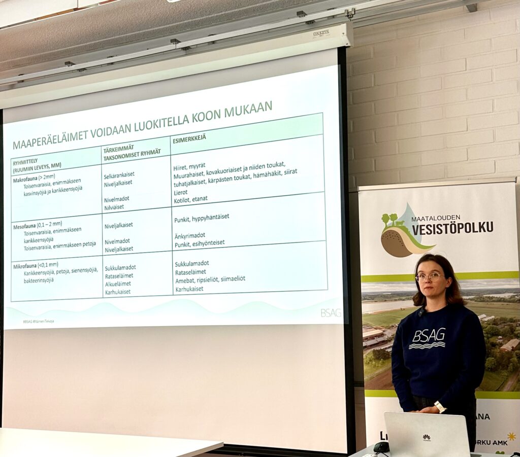 Jenni Jääskeläinen Baltic Sea Action Groupilta perehdytti kuulijoita ”Maaperä ylläpitää elämää” -teemaan.