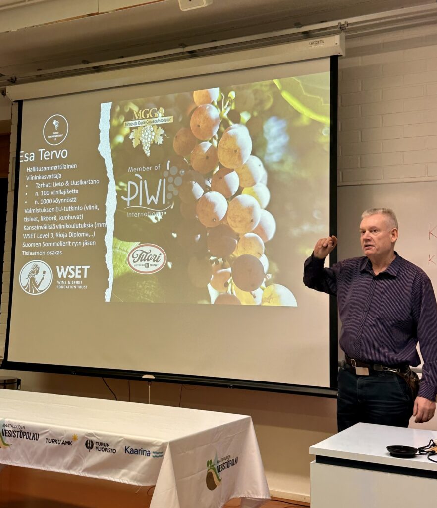 Kari Latvus Suomen Viininkasvattajat ry:stä kertoi viininviljelyn mahdollisuuksista pohjoisessa ilmastossa.