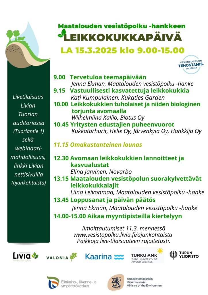 Teemapäivässä perehdytään kestävään ja vesistöystävälliseen leikkokukkatuotantoon.