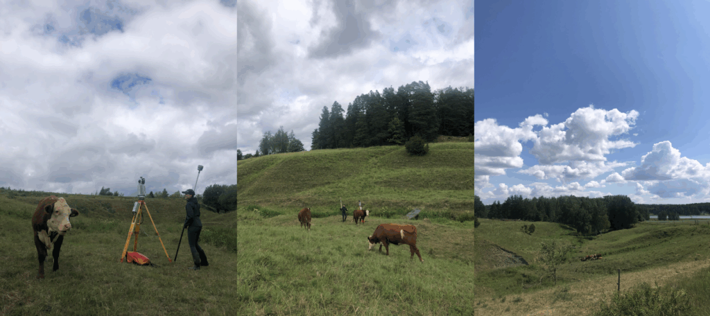 Maalaserkeilausta Myllyojan alueelta Tuorlan opetusmaatilalta. Mittaustöissä mukana olivat myös aluetta laiduntavat lehmät.